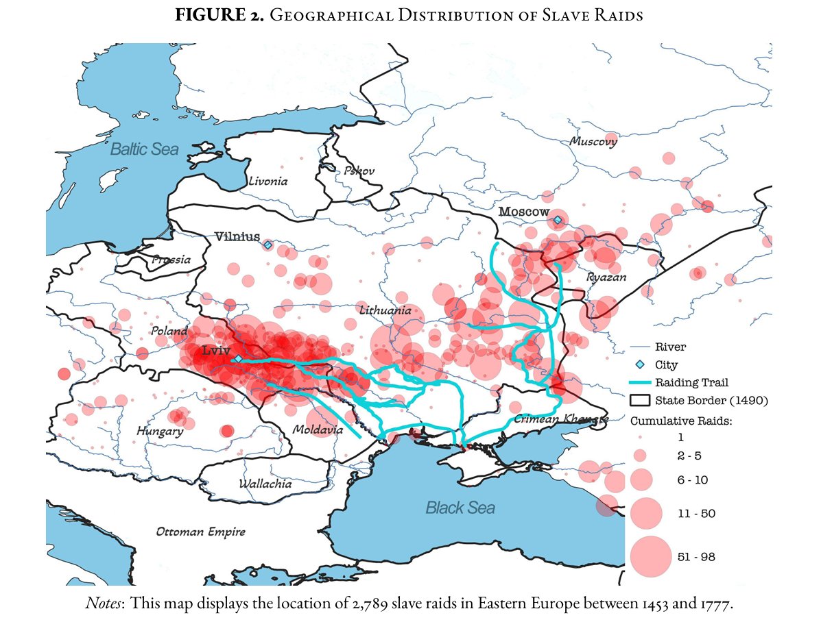 Mapa najazdov krymskych Tatarov aby ziskali otrokov na predaj medzi rokmi 1453 až 1777.