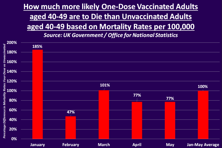 Toto vysvětlení je konsistentní s tím, jak vystřelí mortalita očkovaných pouze první dávkou v letních měsících roku 2021. Nemyslím si, že by byla správná interpretace, že jde hlavně o „vakcinační mortalitu“ (ačkoliv nějaká úmrtí vakcína pravděpodobně způsobila). Spíše je to tak, že ve skupině s první dávkou skutečně zůstali jen ti, kteří na tom byli tak špatně, že druhou dávku dostat nemohli. A protože na tom byli špatně, je jejich mortalita vysoká.