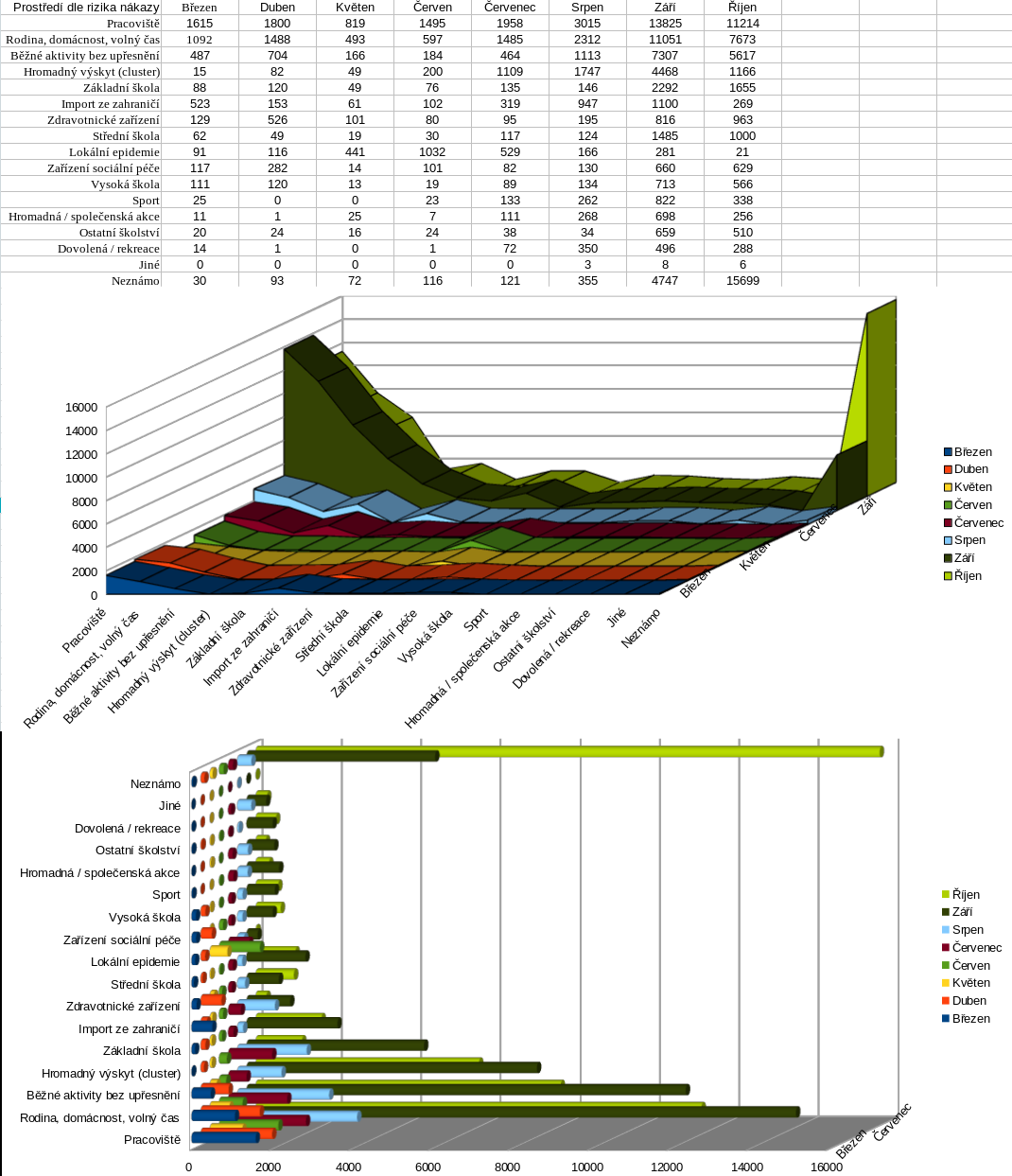 Převedené PDFko a data k 10. říjnu z Scribd do tabulky CSV (prázdná pole = 0) a do grafu