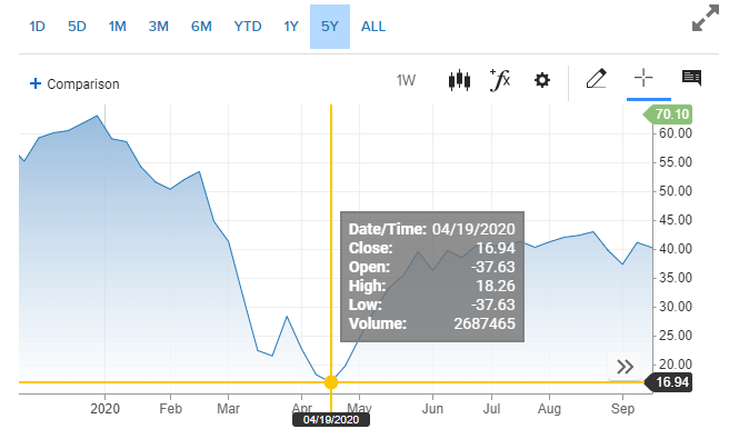 Cena barelu ropy -37,63USD(mínus 37,63USD)
