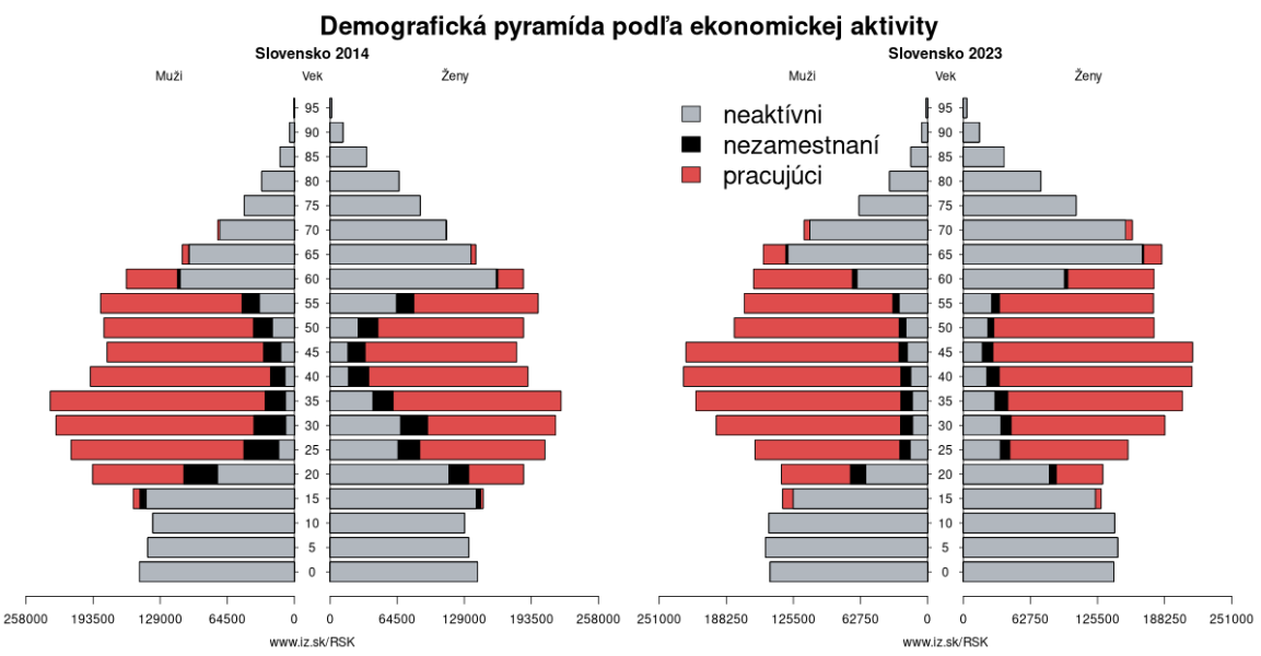 Zaujímavé prevedenie demografického stromu. Koľko ľudí pracuje na tých šedých a čiernych.(a iné grafy)