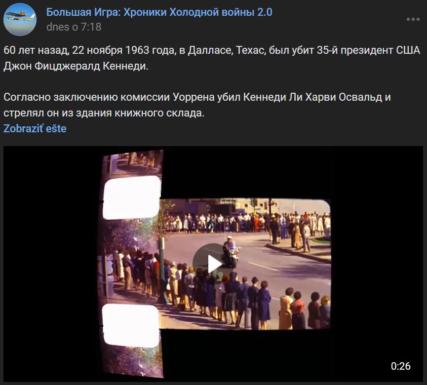 Na videu je známy Zapruderov film. Knižný sklad v zadnej časti kolóny. Video https://vk.com/video-104764077_456281368 dĺžka 26 sek.