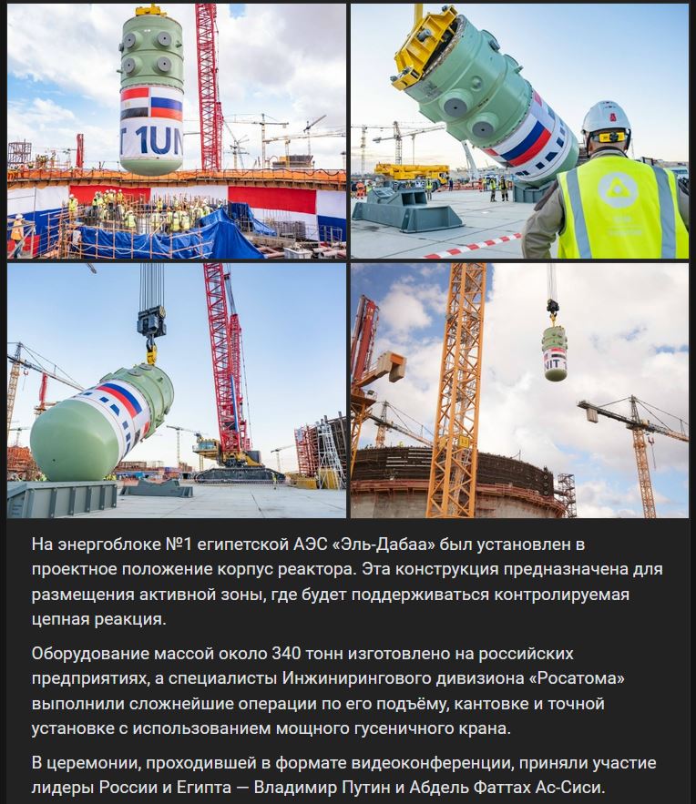V októbri ruská štátna jadrová spoločnosť Rosatom oznámila, že reaktorová nádoba bola dodaná na stavenisko jadrovej elektrárne El Dabaa.