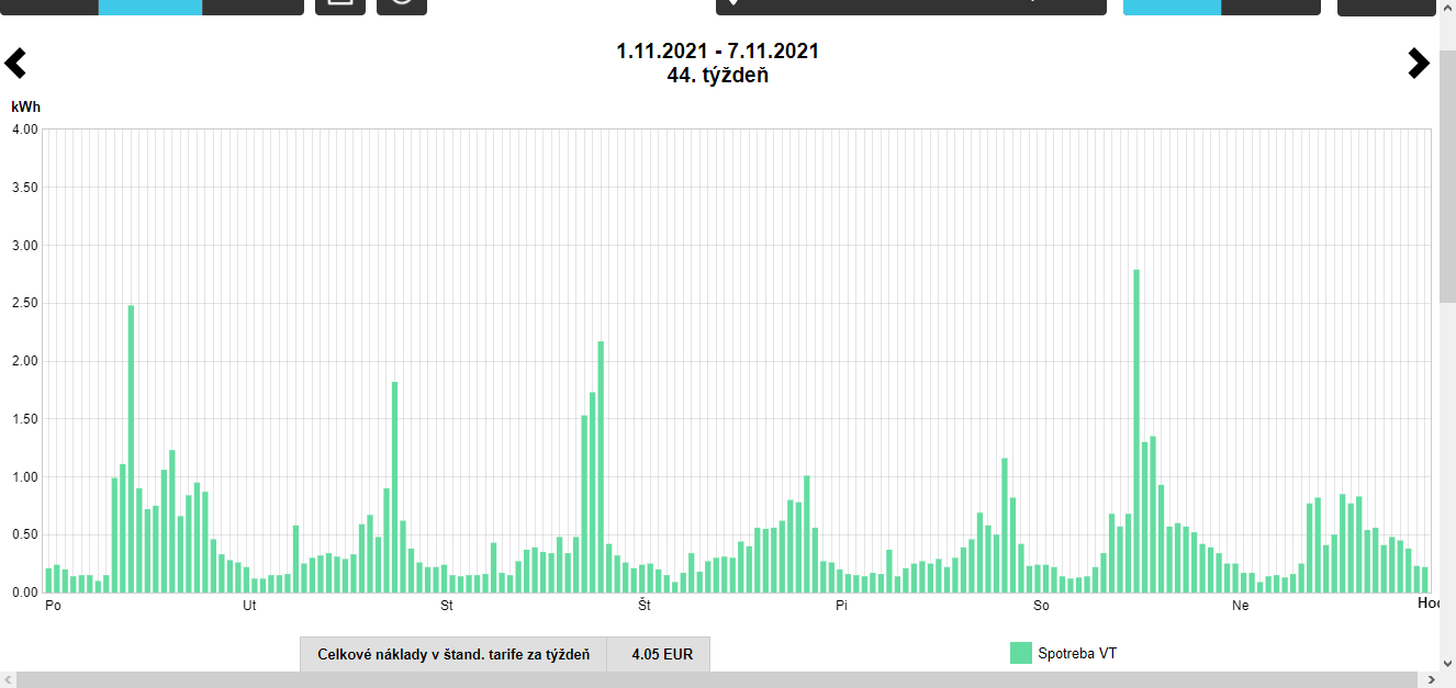 Zelené stĺpiky v grafe sú priemerná spotreba za danú hodinu.