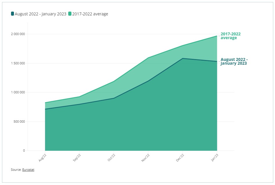 I když se bezpečnost dodávek zemního plynu v Evropské unii po vpádu Ruska na Ukrajinu zlepšila, je stále zapotřebí pokračovat ve snižování poptávky, aby byly zajištěny dostatečné zásobníky plynu na příští zimu. Uvedla to Evropská rada poté, co dosáhla politické dohody o doporučení pokračovat v koordinovaném snižování poptávky. Celoevropská poptávka po plynu by dle dohody do začátku příštího roku měla být snížena o 15 procent.