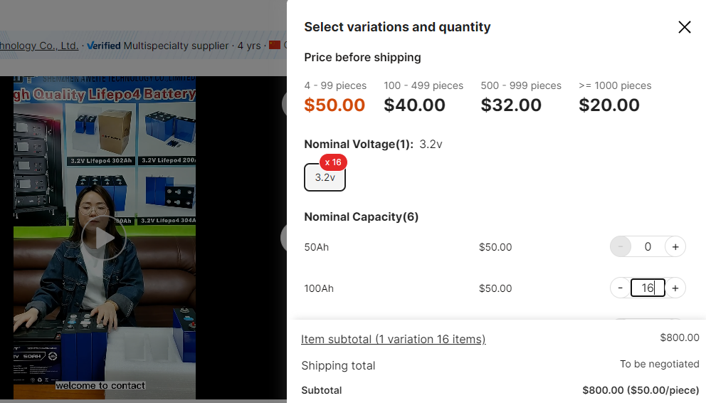 cena 800USD=160USD/kWh + doprava,clo a DPH k tomu