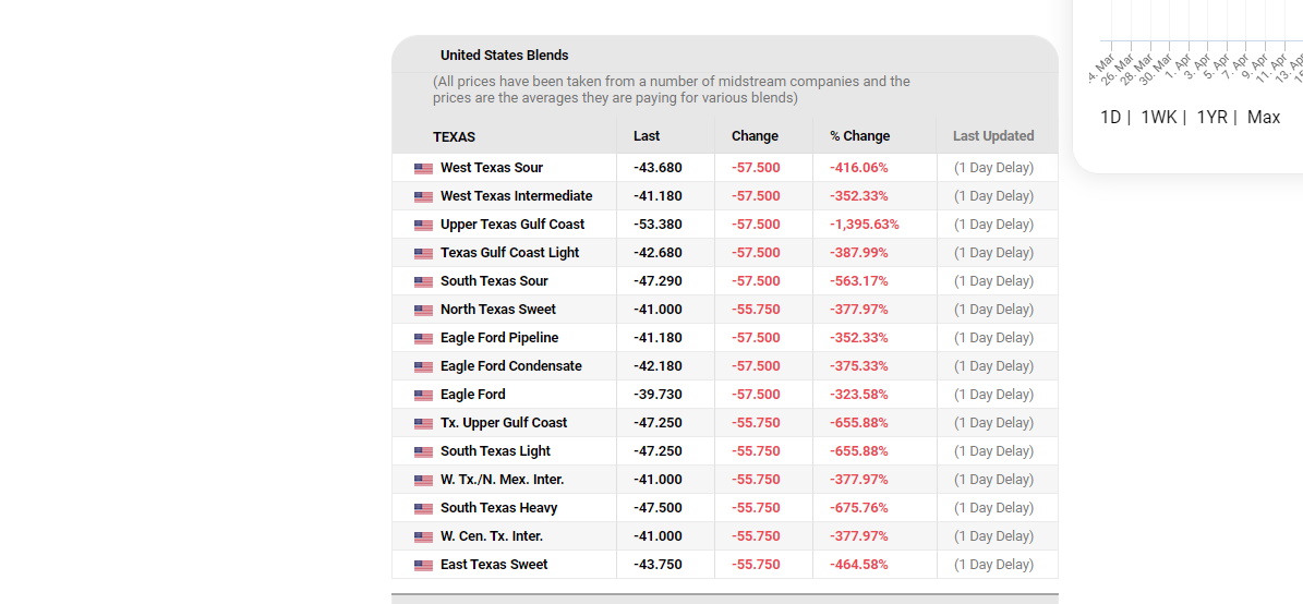 Regule obchodu s WTI stanovují, že ten, komu zůstanou papíry v ruce naposled, je povinen si ropu skutečně odebrat, a to ve městě Cushing (Oklahoma), což je velká křižovatka amerických ropovodů.