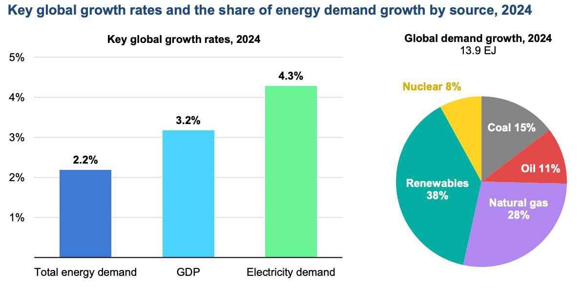 Zdroj https://t.me/selskyrozum/119955 z 27.03.2025Celosvětová spotřeba elektřiny vzroste v roce 2024 o téměř 1 100 TWh, což je více než 2-násobek průměrného ročního nárůstu za poslední desetiletí.