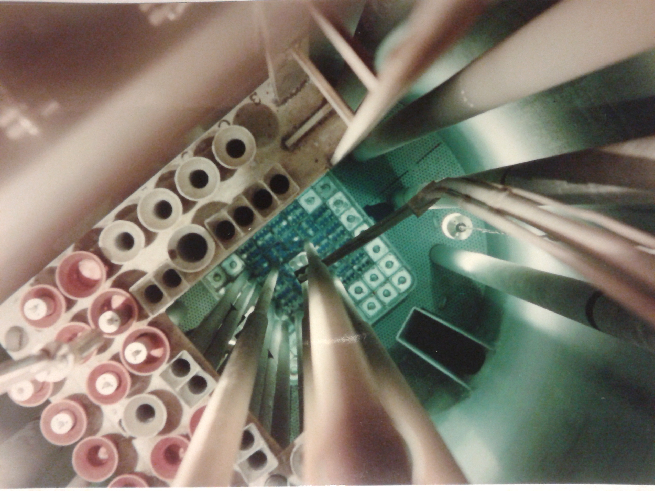 Suterén LR-15, manipulátory v aktivní zóně a pohled do nitra aktivní zóny...