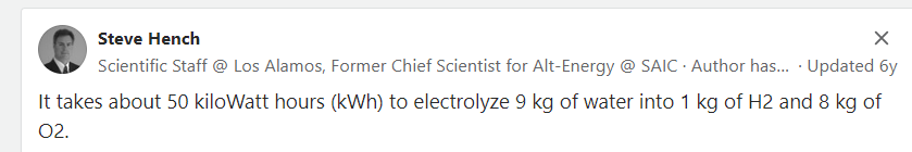 Takže to by bola reálna spotreba pri "zelenom"(elektrolízovom) vodíku 50kWh/100km.