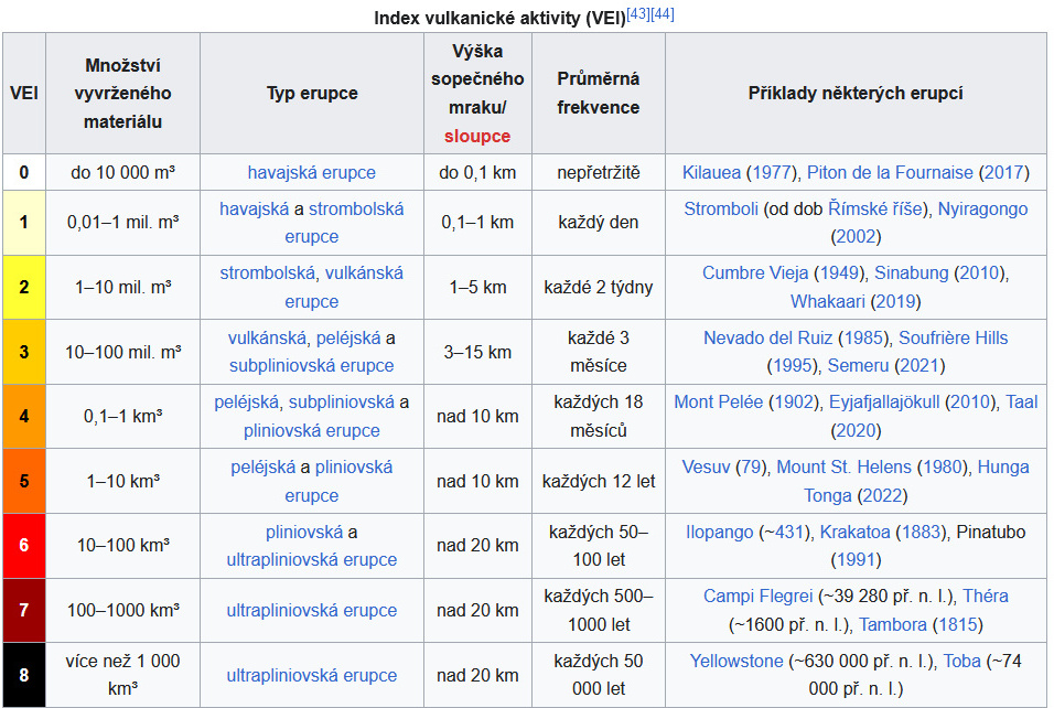 Na konci článku je tato tabulka.Zajímavé je kolik sopečných erupcí bylo po roku 2000 a kolik materiálu sopky vychrlili.(Klik na tabulku)