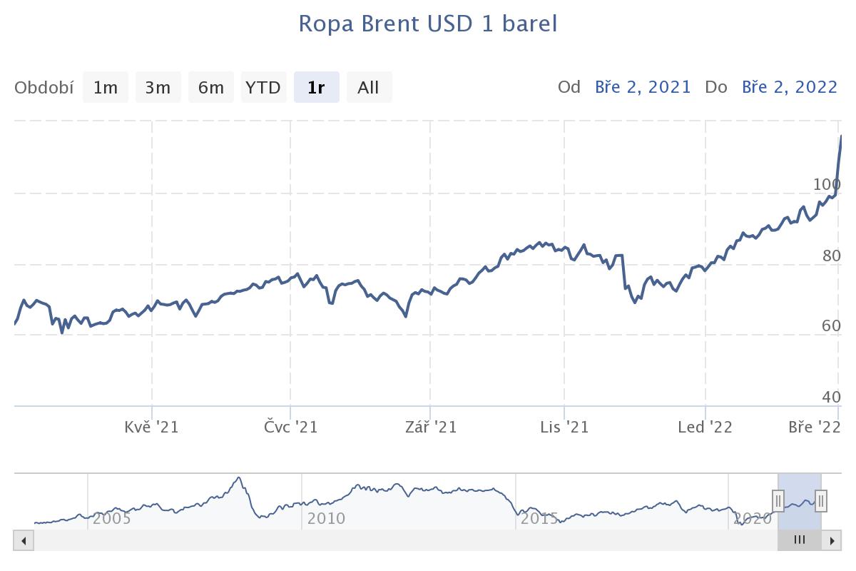 Ropa Brent 1.3.2022 k 19:30 CET