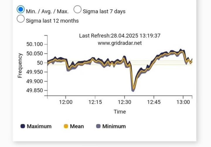 Veštím z vody, ale tipujem že nadbytok FVE elektriny, niektoré sa odopli - povinné ochrany, následne sa zase pri poklese pripli a celá sieť rozkmitala kvôli nedostatku točivých zdrojov s naakumulovanou energiou a padlo to.