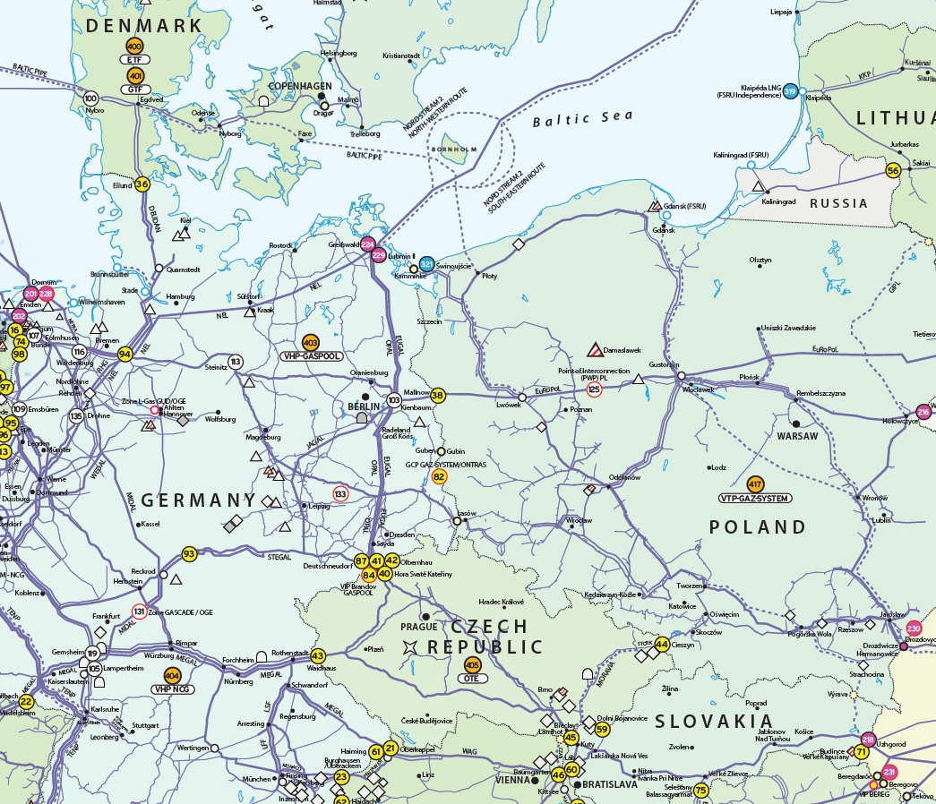 - Polsko pracuje na dokončení plynovodu z Norska s kapacitou 10 mld.m3 ročně, který by měl umožnit konec dodávek z Ruska. Smlouva s Gazpromem vyprší na konci roku a Poláci už ji nebudou prodlužovat. Ve hře je také výstavba druhého terminálu pro dovoz LNG.
