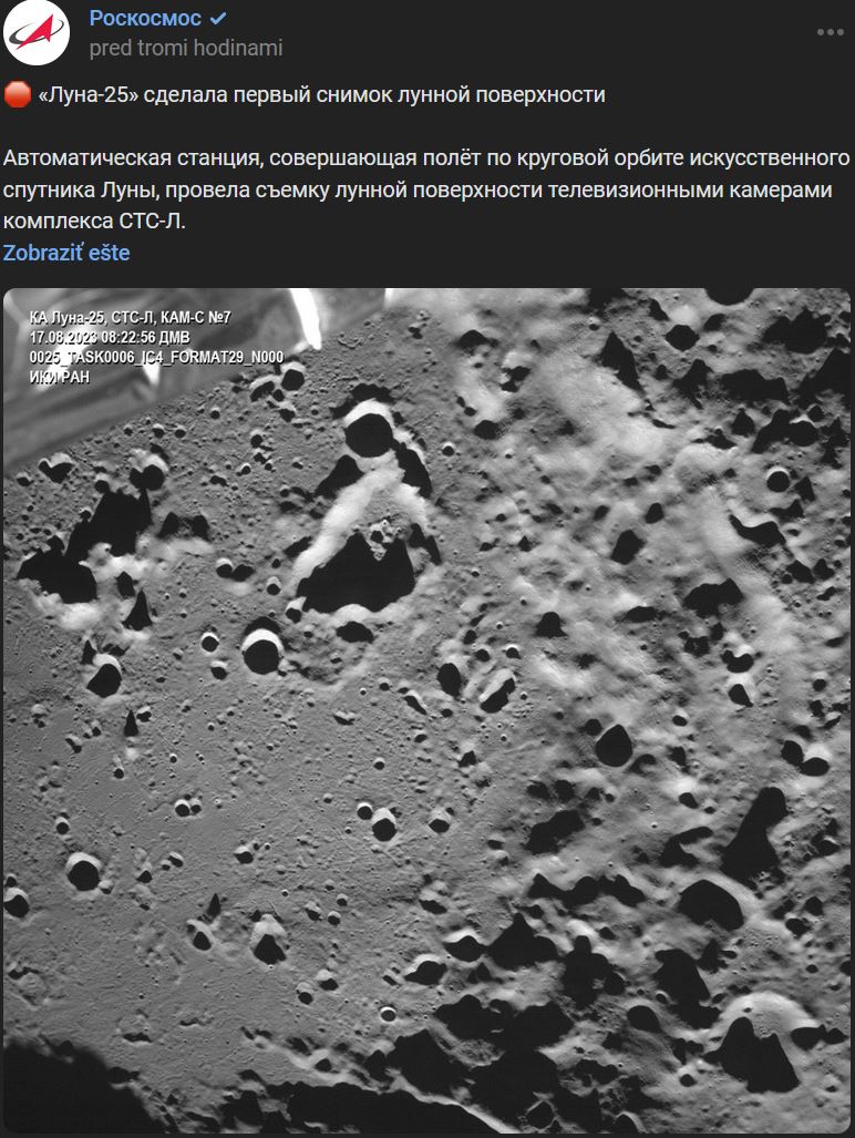 Luna-25 urobila prvú snímku povrchu Mesiaca