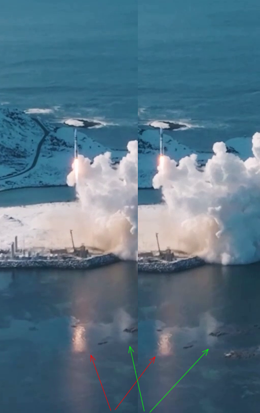 anomália behu motorov - v 43-44 sekunde videa výrazné skrátenie plameňa = zrejme pokles ťahu