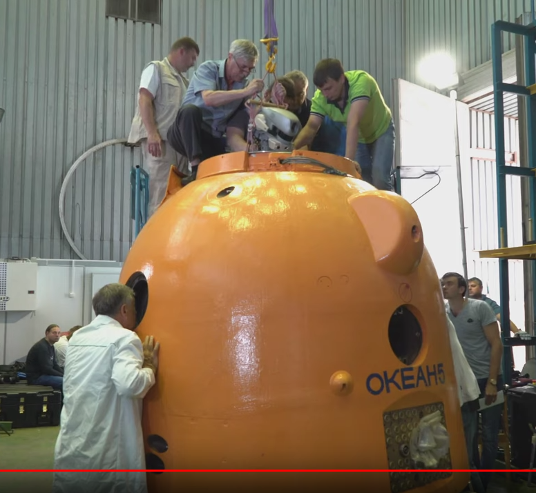 Zo skúšok a prípravy robota Fjodora - maketa kabíny Sojuz s označením Okean5 - kabína je zrejme určená pre nácvik pristátia na more