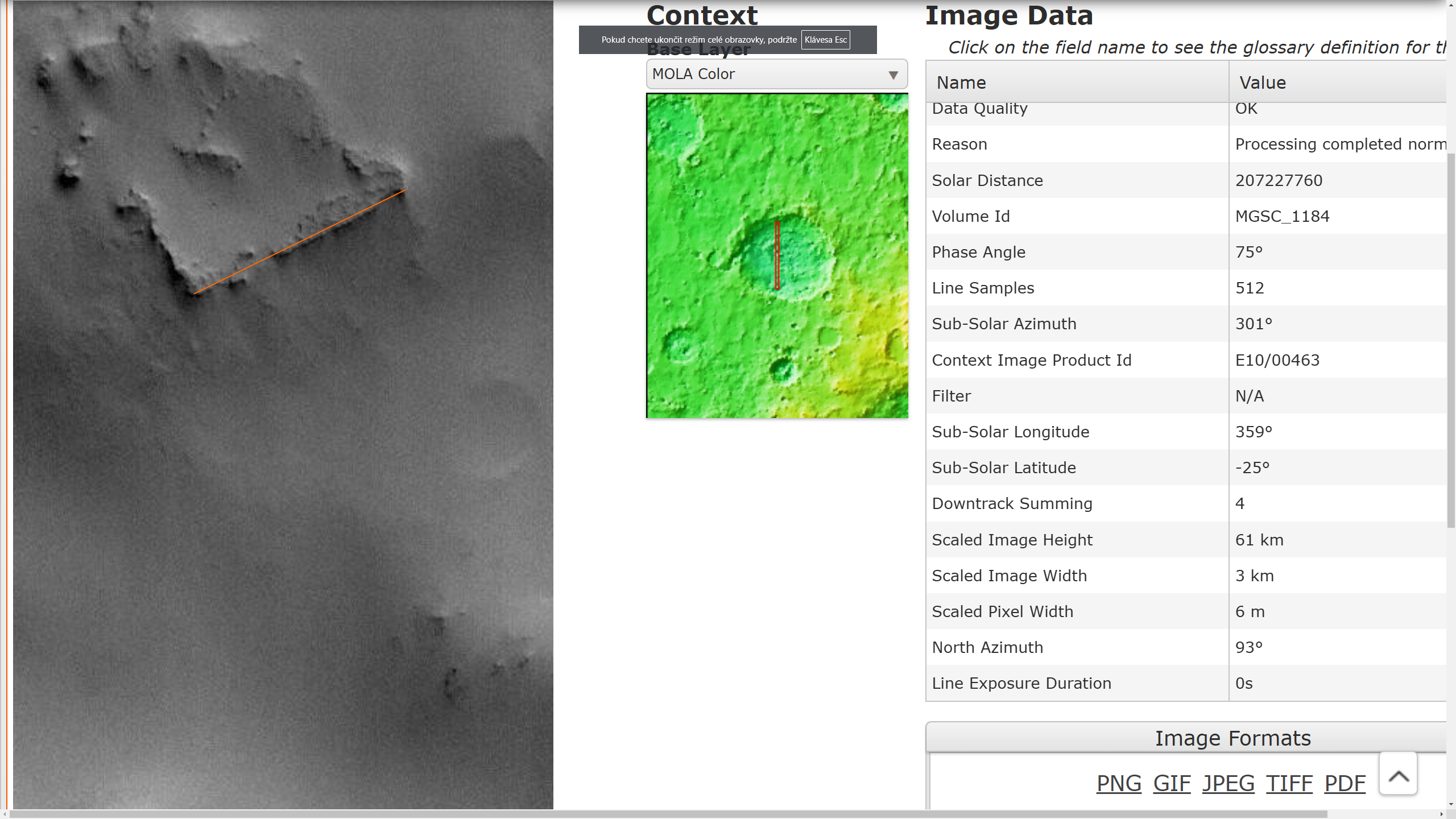 Snímka obrazovky z odkazovanej stránky https://viewer.mars.asu.edu/planetview/ ... P=E1000462 ... Horný okraj pásu.