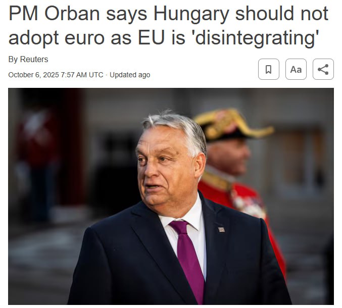 ‼️🇭🇺🇪🇺Maďarsko nezavedie euro, pretože „Európska únia sa rozpadá“ — Orbán
