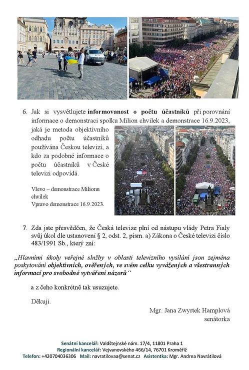 Tak to su zvědavy, jaku odpověď pani senatorka Zwyrtek Hamplova obdrži. Bo odpovědět na take otazky tak, aby se vlk nažral a ČT zustala cela, to bude naročne i pro mašineryju ředitela ČT. Zajimave na cele te zaležitosti (pokud připusti, že lhali) je to, že se za to nestydi a že su schopni bagatelizovat obrovsku demošku, nebo naopak nafuknut rozměry marginalniho setkani a vubec se přitem nestydi...