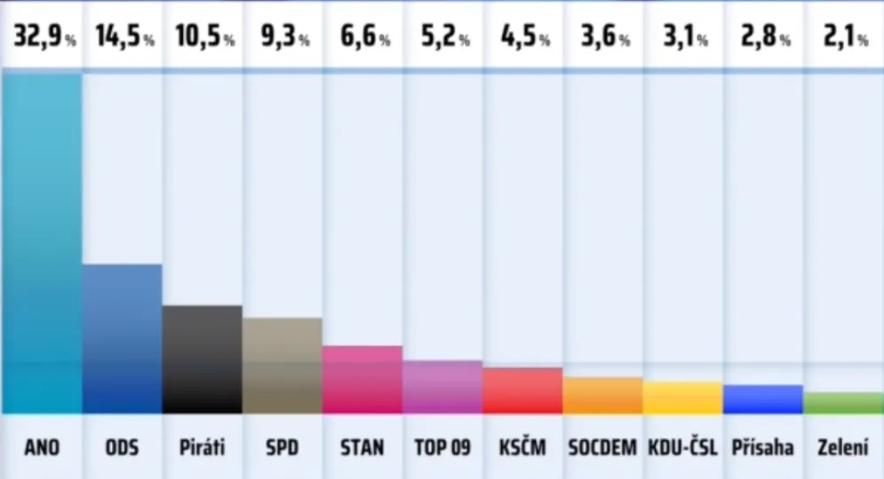 Sněmovní volby by v březnu vyhrálo opoziční hnutí ANO s 32,9 procenta hlasů. Ukazují to výsledky průzkumu agentury STEM zveřejněné dnes televizní stanicí CNN Prima News. Mírně si podle průzkumu polepšila vládní ODS s 14,5 procenta hlasů. Za ní jsou Piráti se ziskem 10,5 procenta hlasů a za nimi SPD s 9,3 procenta. Kolem hranice pěti procent nutných pro vstup do Sněmovny se pohybují Starostové s 6,6 procenta a TOP 09 s 5,2 procenta. Těsně pod hranicí pěti procent by podle průzkumu skončili v březnových volbách komunisté s 4,5 procenta, ČSSD s 3,6 a vládní lidovci s 3,1 procenta. Struktura voličů je podle analytika STEM Martina Kratochvíla nadále podobná. Hnutí ANO nachází významnou oporu u občanů bez maturity a zvlášť u lidí starších 60 let. Oproti tomu strany vládní koalice si stojí dobře u lidí s vysokoškolským vzděláním, zatímco u nižších stupňů vzdělání je jejich pozice slabší. Mladí voliči nejčastěji volí Piráty. Nejpevnější jádro voličů odhodlaných volit svou stranu má ODS a hnutí ANO, uvedl.