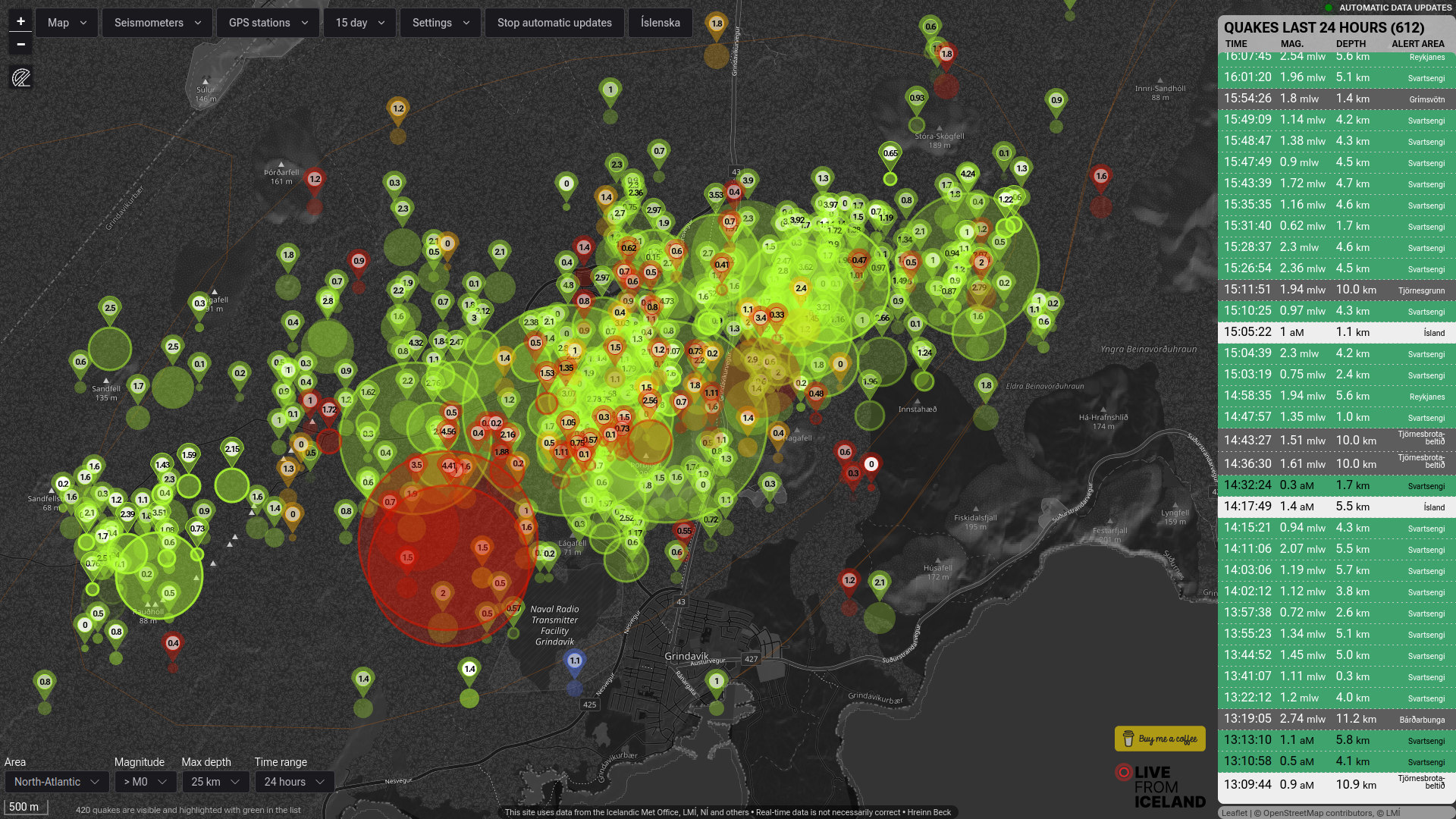 - Silná aktivita začala na poloostrově Reykjanes dnes ve čtyři hodiny ráno.