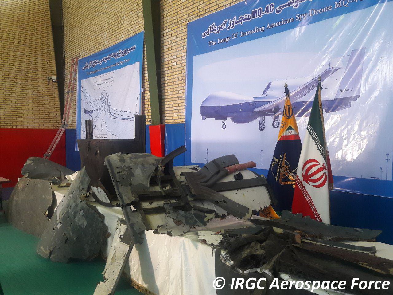 Ministr zahraničí Íránu: V 00:14 vzlétl americký drone z SAE v stealth režimu a porušil íránský vzdušný prostor. Byl zaměřen v 04:05 na souřadnicích (25°59'43N 57°02'25E) poblíž Kouh-e Mobarak. Zajistili jsme části amerického vojenského dronu v našich teritoriálních vodách, kde byl sestřelen.