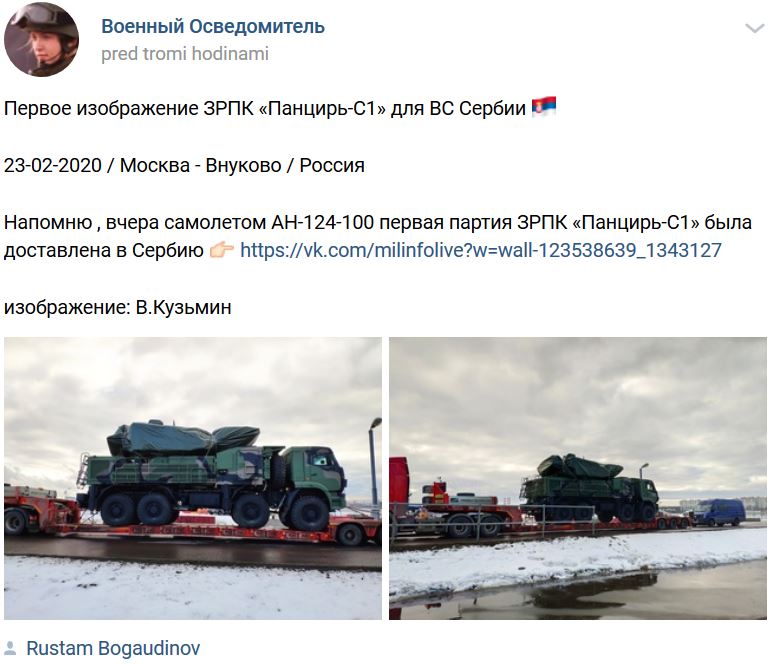 Srbský prezident Vučič vyhlásil, že S-400 je síce vynikajúci komplex PVO, ale Srbsko nemá na neho peniaze. Bude sa spoliehať na Pancir-S a ďalšie systémy, ktoré nie sú na sankčnom zozname. V materiáli sa spomína, že Srbsko objednalo jeden komplex PVO Pancir-S.