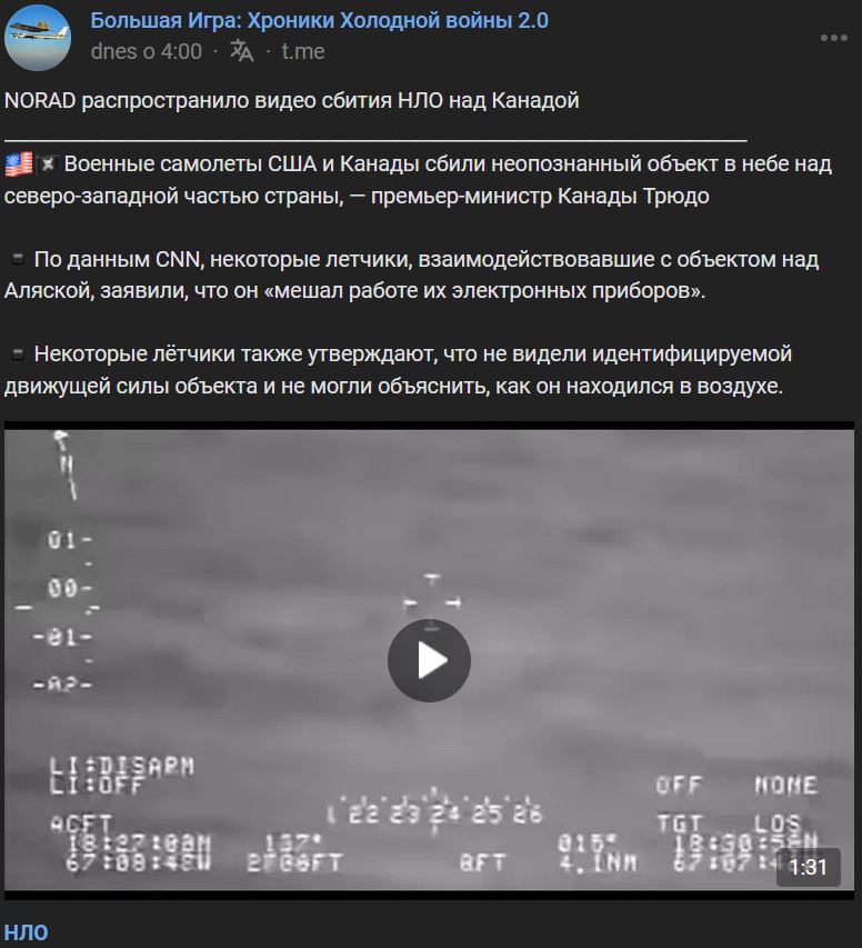 Video od občana = 2 biele bodky na modrej oblohe https://vk.com/video-104764077_456273137 dĺžka 21 sek.