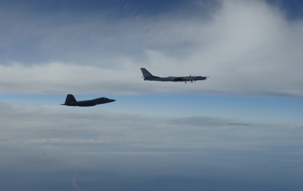 Podobne ako aj 01.09.2018 kde lietadlá F-22 štartovali proti Tu-95MS v doprovode s Su-35S = tí ale už išli do zóny PVO Aljašky, ale stále v medzinárodnom vzdušnom priestore.