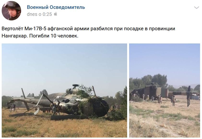 V utorok 10.11.2020 o 23:55 hod miestneho času v Afganistane pri pokuse o pristátie havária vrtuľníka Mil Mi-17V5 Afganskej národnej armády = 10 mŕtvych: Zdroj https://vk.com/wall-123538639_1666250 z 12.11.2020
