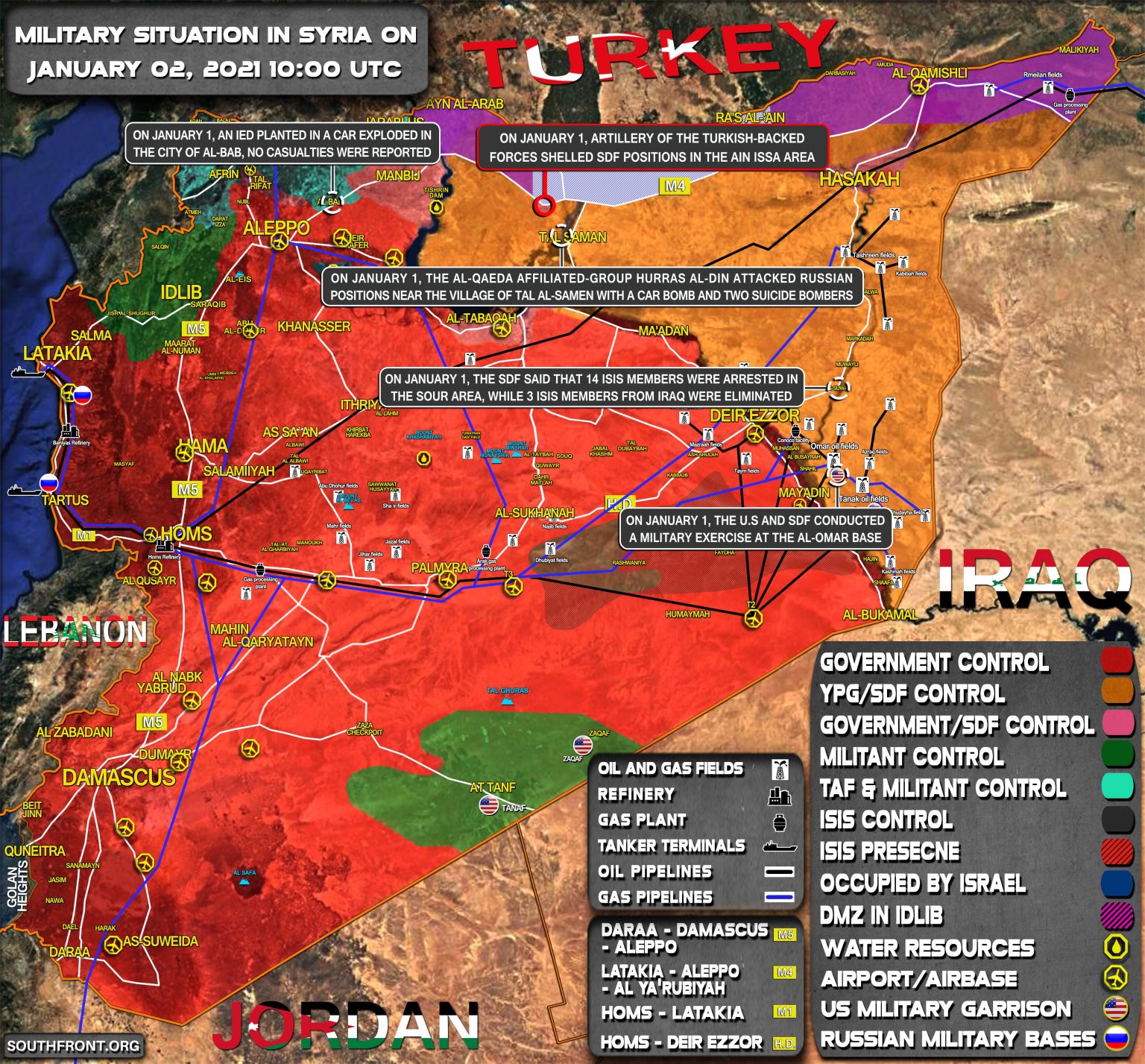 Vojenská situácia v Sýrii 2. januára 2021 (aktualizácia mapy)