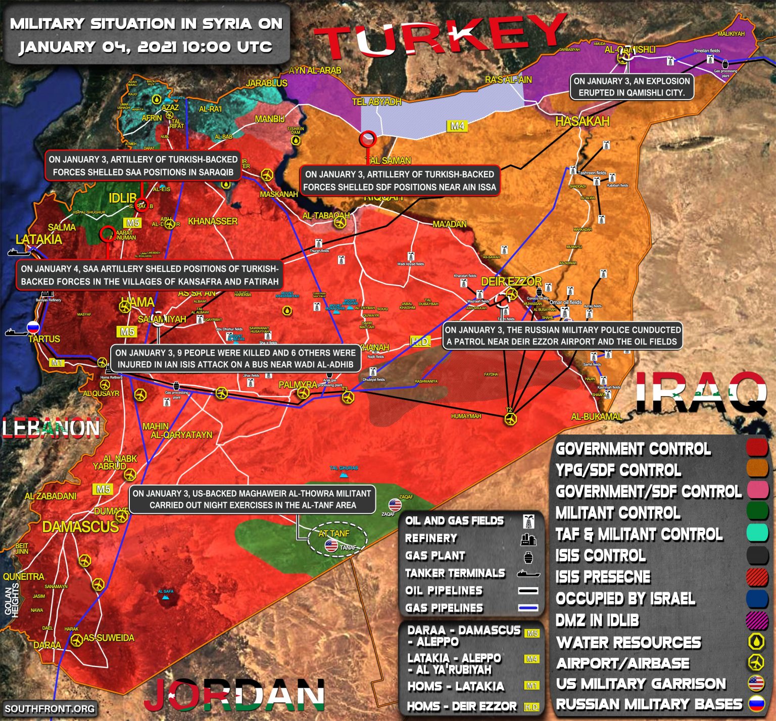Vojenská situácia v Sýrii 4. januára 2021 (aktualizácia mapy)