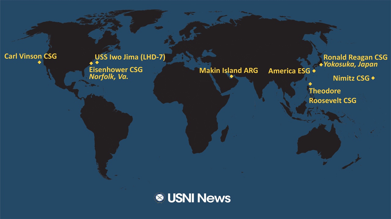 Umístění amerických letadlových lodí a obojživelných útočných skupin