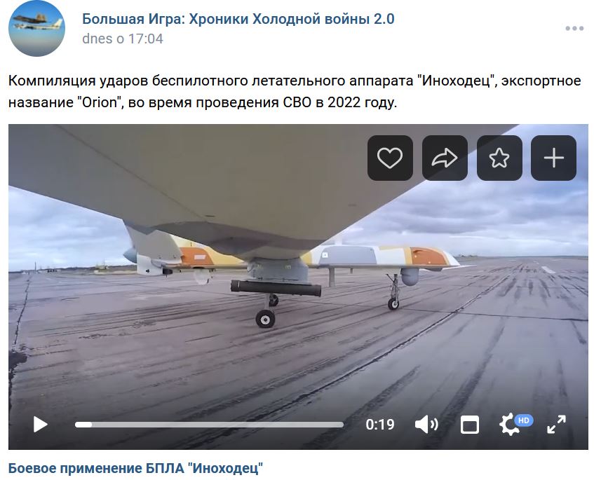 Kompilácia zásahov bezpilotného lietajúceho aparátu BPLA Inochodec (Иноходец) s exportným názvom Orion počas SVO v roku 2022.