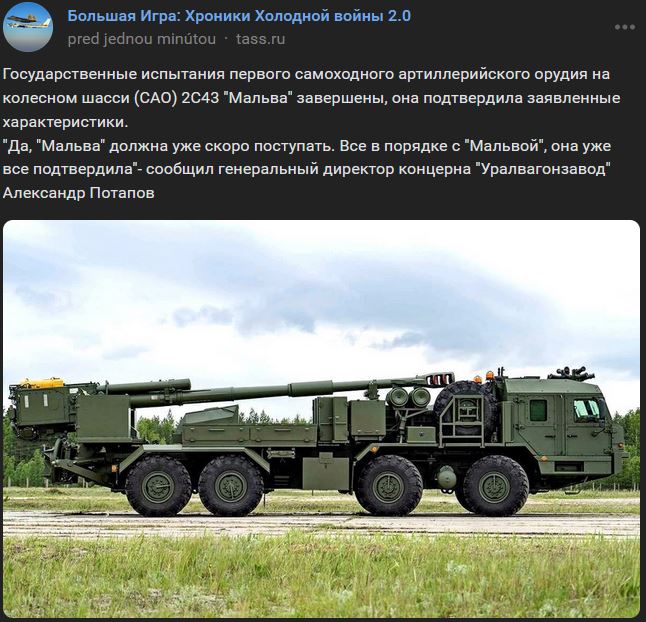 Štátne skúšky prvého samohybného delostreleckého kanóna na kolesovom podvozku (SAO/САО) 2S43 (2С43) Maľva (Мальва) boli ukončené a potvrdili jeho deklarované parametre.