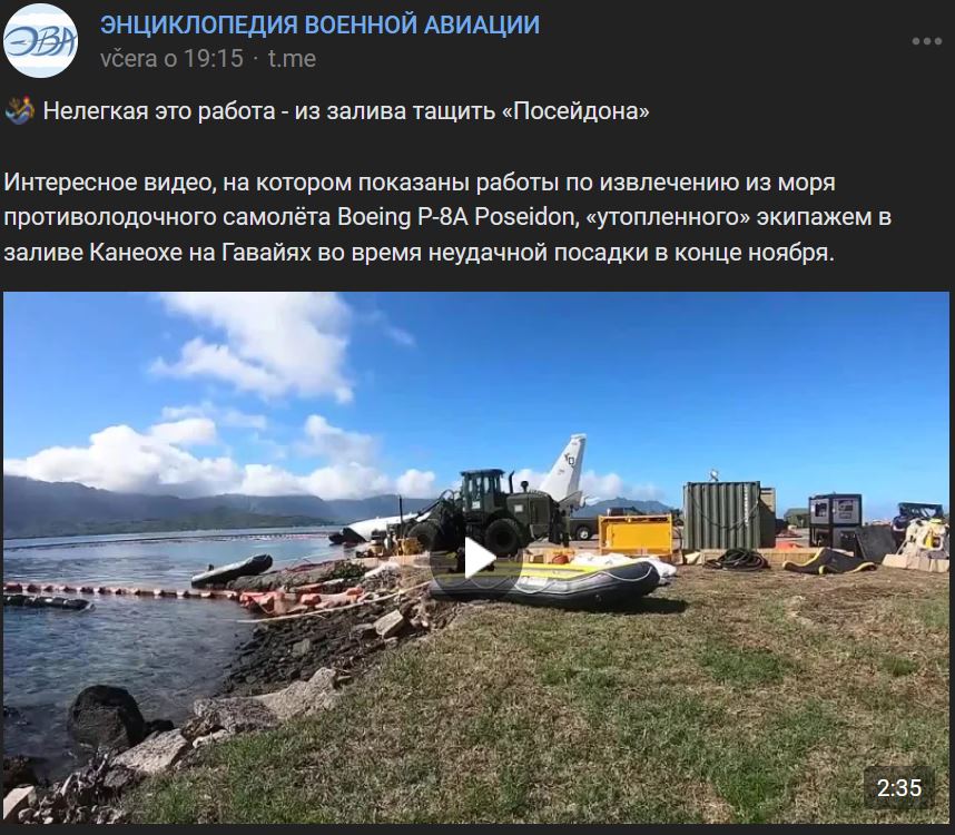 Zaujímavé video zachytávajúce vyťahovanie protiponorkového lietadla Boeing P-8A Poseidon z mora, ktoré jeho posádka "utopila" v zálive Kaneohe na Havaji počas neúspešného pristátia koncom 11/2023.
