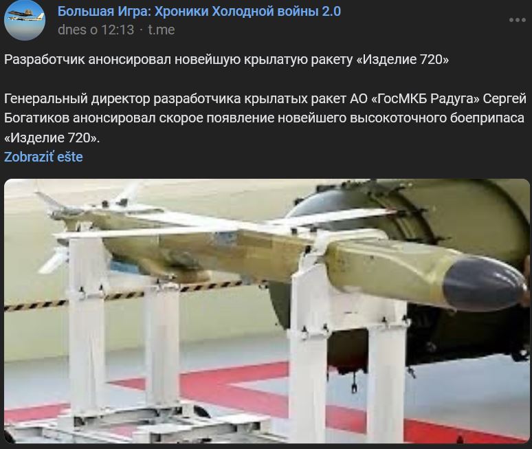 ↑ Vývojár popísal najnovšiu raketu Izdelije 720 (Изделие 720) / Výrobok 720
