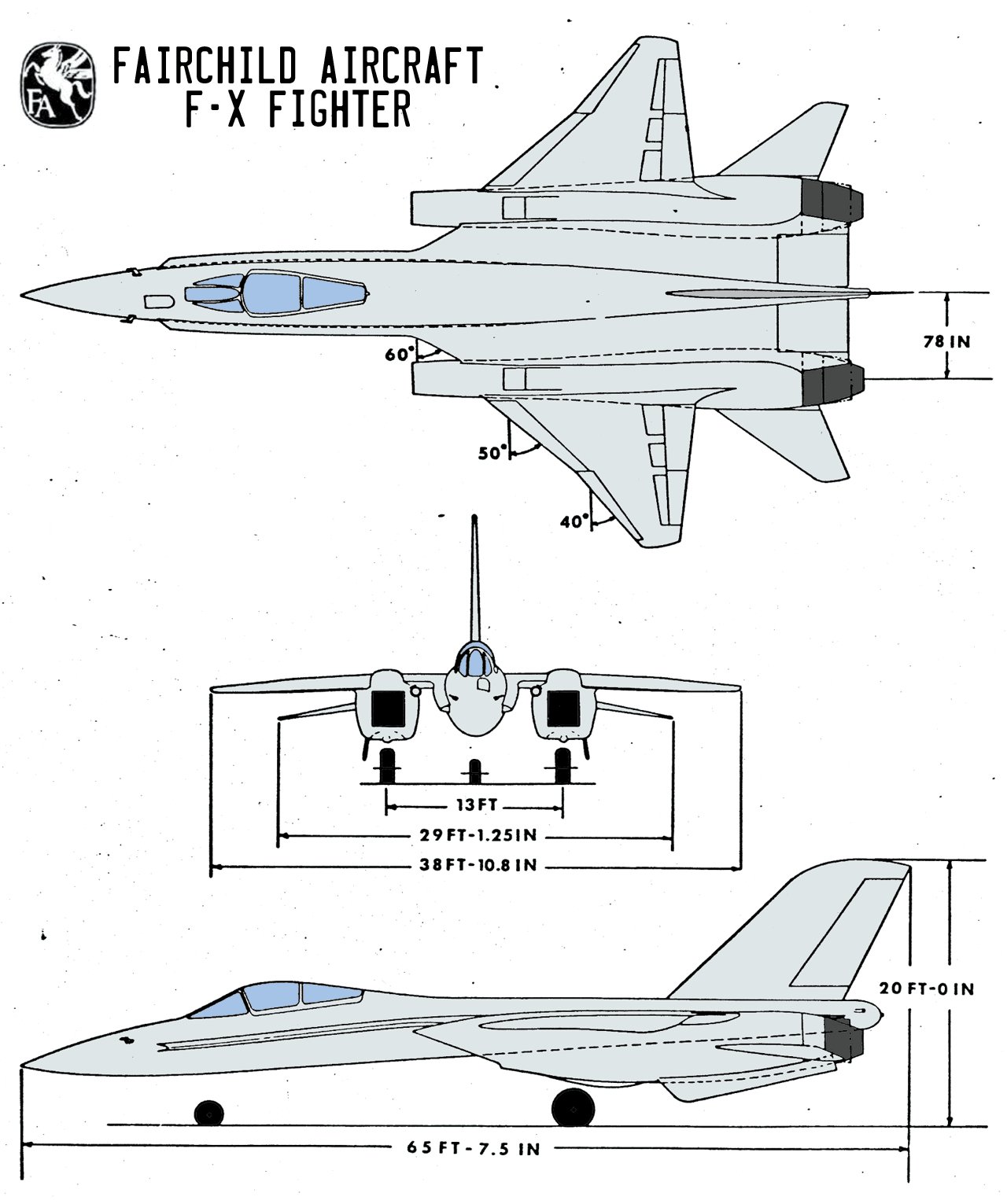 Návrh North Americanu je ten s ogiválním křídlem, zůstal na třetím místě a druhé místo měl Fairchild, ten s motory daleko od sebe.