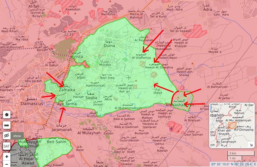 Damašek. Sýrska armáda začína vojenskú operáciu vo V. Ghoute pozdĺž dvoch osí: prvou Nawabiya - Haush Zarikia - letecká obrana, druhá je Harasta.