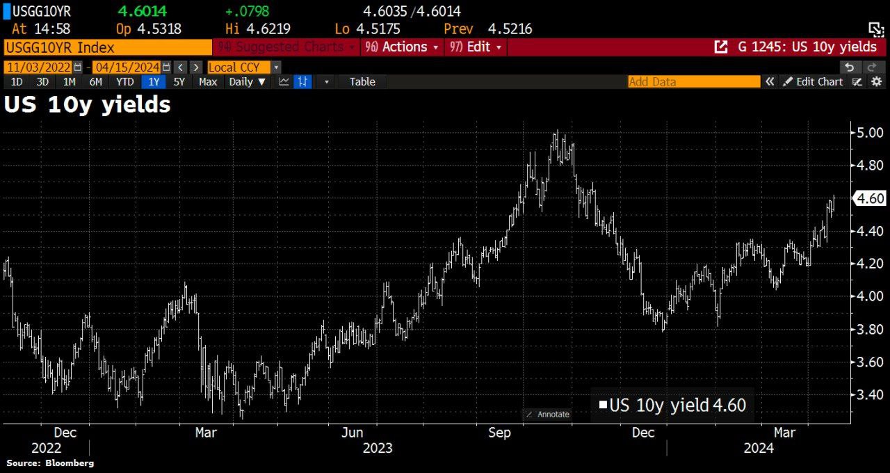 Výnosy desetiletých amerických dluhopisů nadále rostly a zvýšily se na 4,6 %. Jakýkoli růst sazeb je pro Američany s nadměrným zadlužením velmi citlivý. @banksta