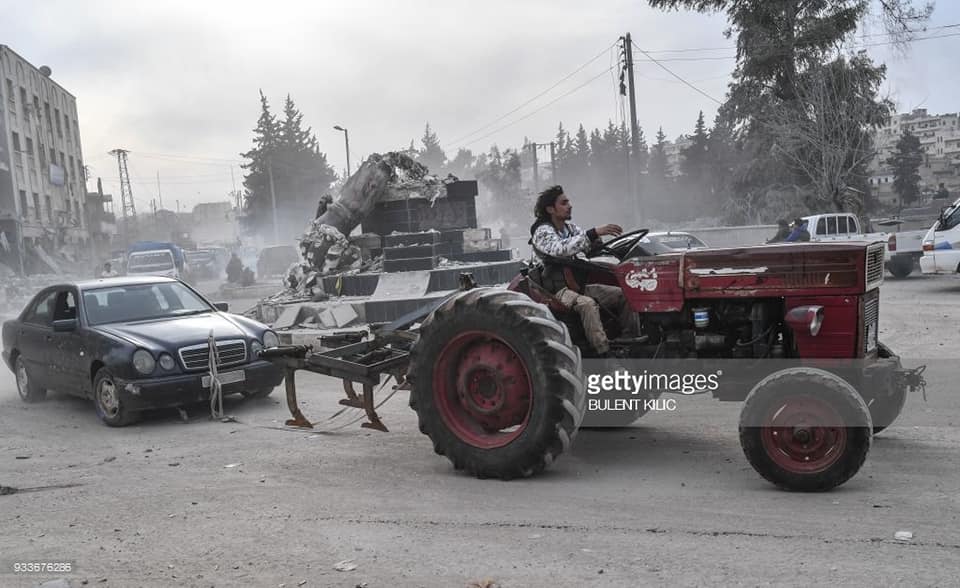 Mesto Afrin - rabovanie po oslobodení / dobití - berú všetko, úplne, aj sochy strhli