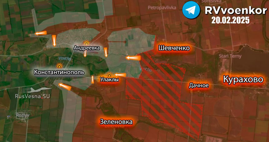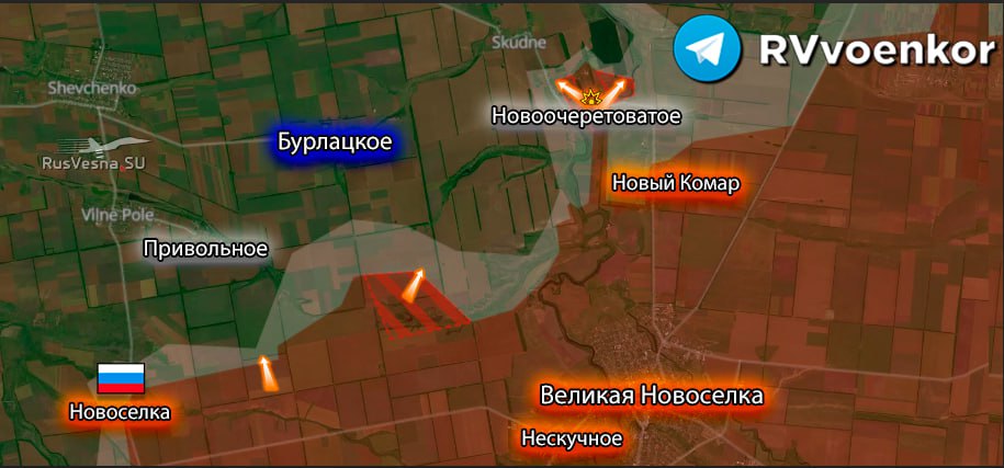 🔻 Jednotky ruských ozbrojených síl naďalej rozvíjajú ofenzívu v smere na Novoandrijevku, ako aj boje v oblastiach Malého Ščerbakova a Stepového. V týchto oblastiach sa ruské jednotky metodicky pretláčajú cez pozície nepriateľa a vytvárajú hrozbu ďalšieho postupu k strategickým zásobovacím uzlom AFU.