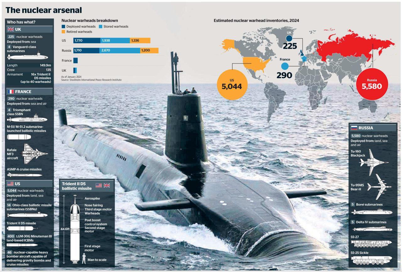 Deník The Times se proto rozhodl porovnat jaderné síly Ruska, USA, Británie a Francie.