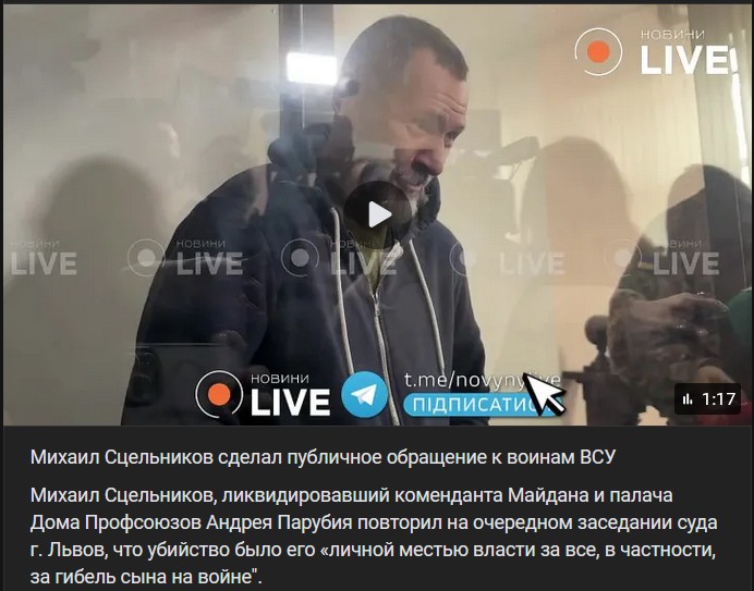 Michail Sceľnikov (Михаил Сцельников), ktorý zlikvidoval veliteľa Majdanu a kata Domu odborov Andreja Parubija (Андрея Парубия), na poslednom zasadnutí súdu vo Ľvove zopakoval, že vražda bola jeho „osobnou pomstou moci za všetko, najmä za smrť syna vo vojne“.