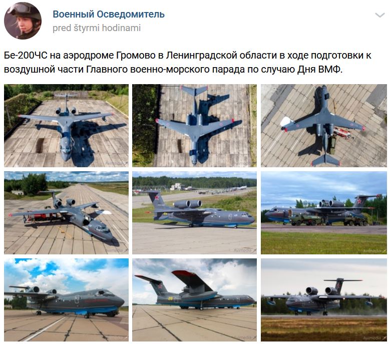 Minister obrany Sergej Šojgu v stredu 20.05.2020 uviedol, že okrem inej techniky sa v Petrohrade na Deň námorníctva vo vzdušnej časti predstaví aj protiponorkové obojživelné lietadlo Berijev Be-200 Aľtair (Бе-200 "Альтаир")