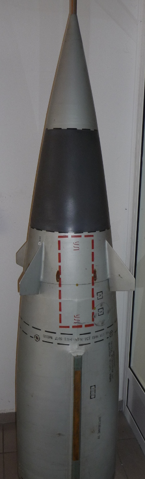 To Gandalf:"Tahle koncovka na raketě je prý pro všechny záhadou..". Máš úplné foto??? Na cvičnom cieli z RS-130 ( M-13 kal. 132mm) to malo