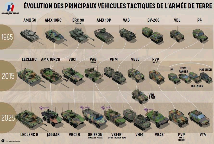 Obrázková minimapa obrněné techniky francouzské armády od roku 1985 do roku 2025